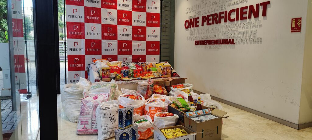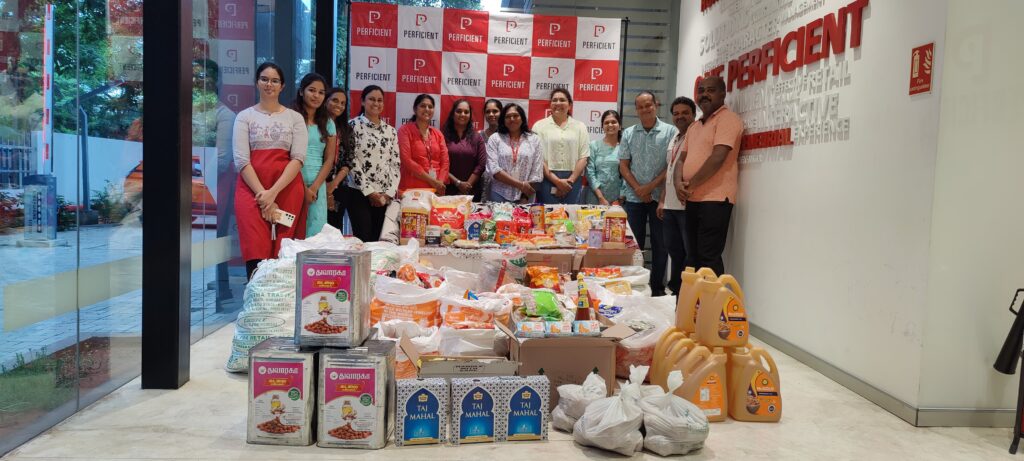 Our Chennai colleagues supported HAM by partnering with Ramakrishna Mission Ashrama, a mission-based organization that carries out extensive educational and philanthropic work in India and abroad. Colleagues were eager to support the organization by bringing food donations to the Perficient Chennai office. By the end of September, the donation box was overflowing with more than 2,200 pounds of food – enough groceries to feed 100+ children for a month!