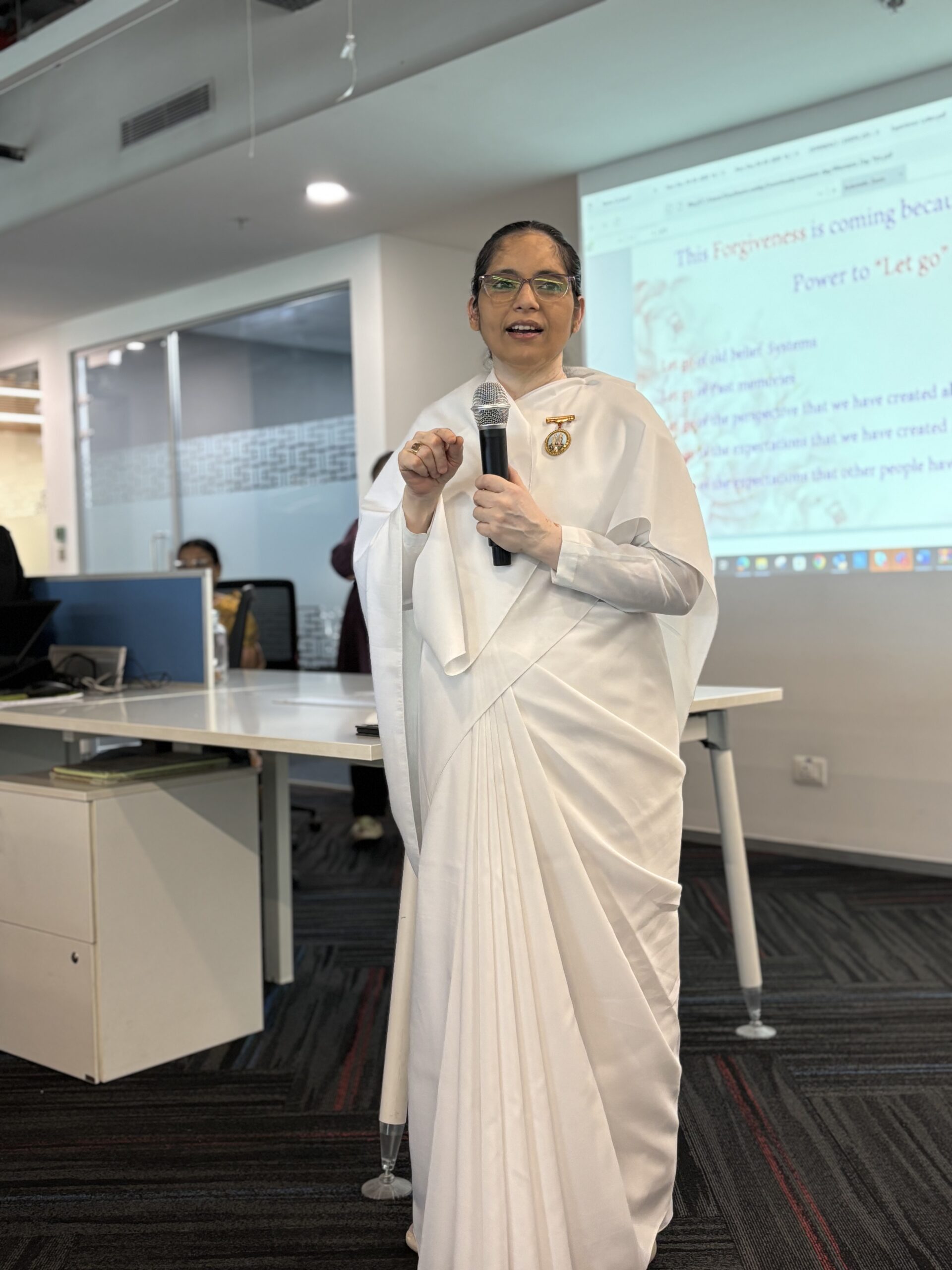 The day began with a wonderful session on how to meditate and keep calm while juggling the responsibilities of life and work at a workshop held by BK Lakshmi Ben Brahma Kumari. She provided useful strategies for integrating meditation into our everyday routines and underlined the significance of seeking inner peace amid the commotion outside. She asserts that real equilibrium arises from realising the link between inner tranquility and external action. Whether at work, at home, or in any other area, we bring a sense of peace and clarity to all we do when we are spiritually centered. She reminded us that maintaining long-term success and fulfillment requires making time for introspection and developing a calm mind, not as an extravagance. The wisdom of BK Lakshmi inspires us to cultivate our inner and professional well-being in order to establish a harmonic balance that enables women to flourish in all facets of life.